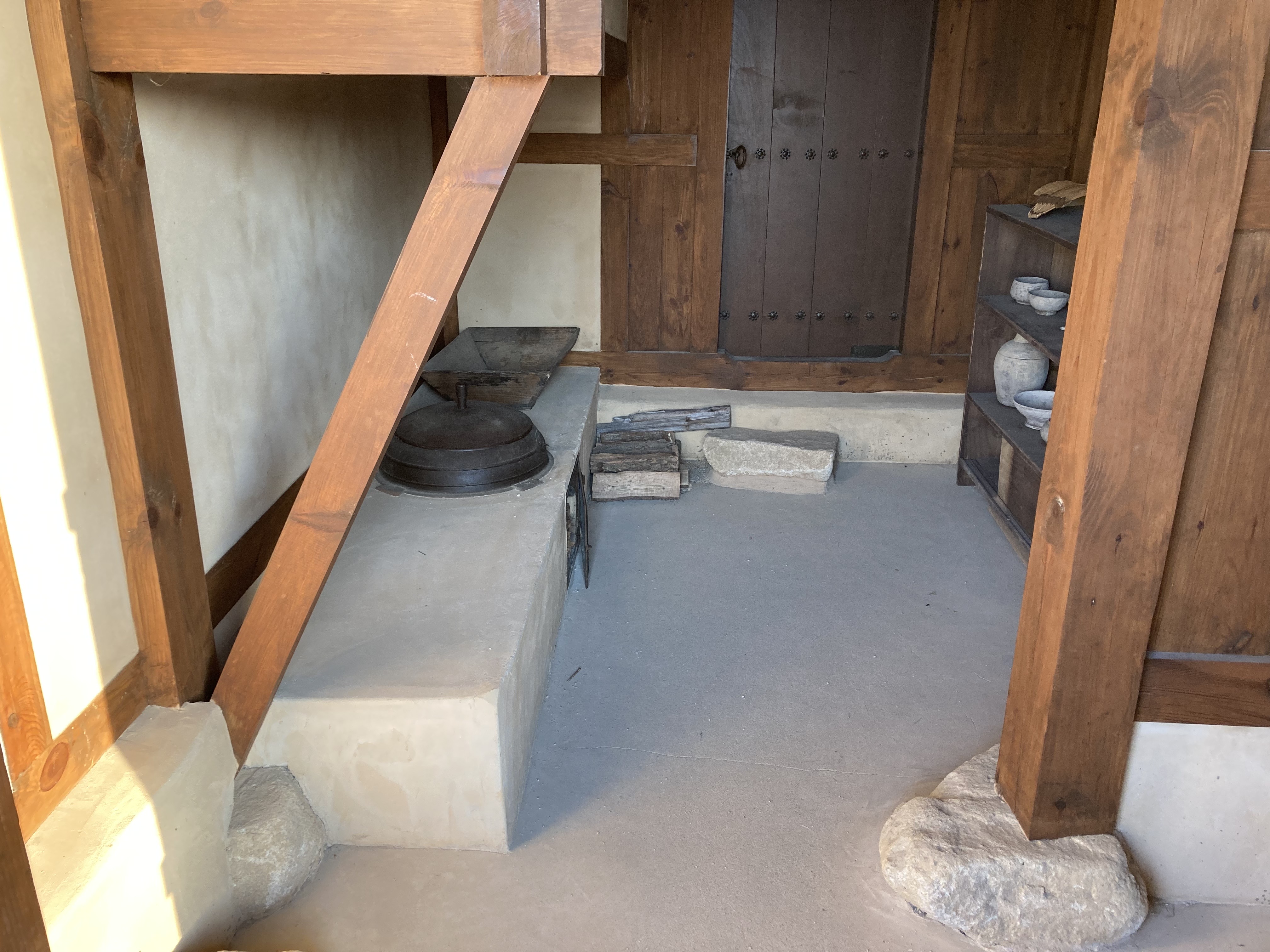 아래 사진에서 보이는 것처럼 그 시대를 알 수 있는 아궁이, 옷을 짜는 기계 등도 함께 있어서 아이들이 책에 나오는 것을 직접 눈으로 볼 수 있는 작은 체험을 할 수 있습니다.